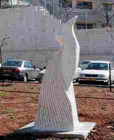 פסל של אביבה ברגרמיקום: רח' צאלון, ליד הכניסה לחניית היכל הספורט.