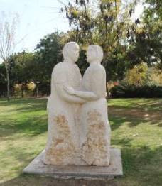 פסל של בן אריה רותי וצוקרמן יוסף ז''למיקום: עמק זבולון, ליד הכיכר לרחוב משה דיין.