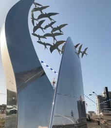 פסל של האמן לב אברמזון בשם ציפורי האביב.