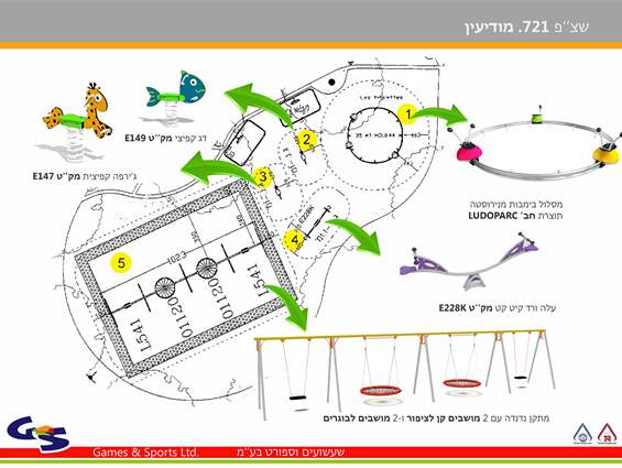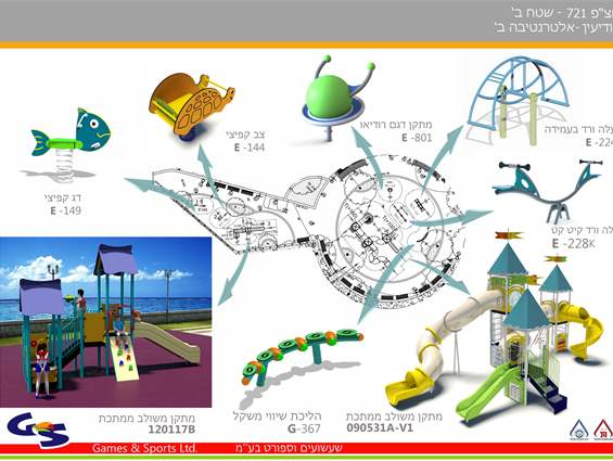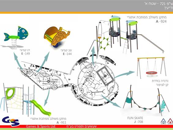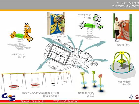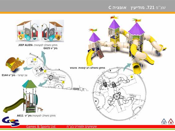 שני מתקנים משולבים האחד כולל שלוש מגלשות בגבהים שונים, סולמות טיפוס, קורי עכשיו לטיפוס ומנהרות זחילה, המתקן השני כולל מגלשה וקיר טיפוס. בנוסף באופציה זו מוצעות שתי נדנדות עלה ורד (אחת בעמידה והשנייה בישיבה) נדנדת פעוטות בדמות צב נדנדה בדמות דג מתקן להליכה בשיווי משקל ומתקן רודאו לילדים.
