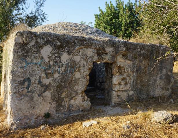 עובי הקירות הוא כ-80 ס"מ, הקיר הפנימי עשוי אבנים גדולות והקיר החיצוני מאבנים צרות יותר. חלל הפנים של המבנה היה מטויח ונותר כך, ואילו מבחוץ רק הכיפה טויחה.