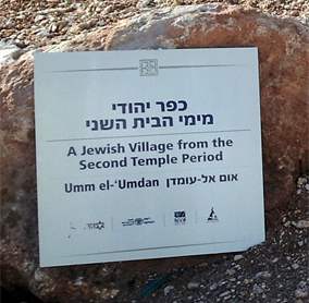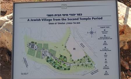 השרידים העיקריים אשר נחשפו בחפירות הארכיאולוגיות באתר אום אל-עומדאן הם של היישוב היהודי ובו סמטה מרכזית שמשני עבריה מבני מגורים ומבנה מרכזי, אשר זוהה כבית כנסת. מבנה בית הכנסת עבר מספר שינויים במהלך השנים – החל מאולם ציבורי מהתקופה ההלניסטית הקדומה (הסלווקית), דרך אולם גדול יותר אשר הוקם בתקופת החשמונאים מעל האולם הסלווקי ושימש כבית כנסת ועד בית כנסת רחב יותר אשר הוקם בימיו של הורדוס תוך הריסת בית הכנסת החשמונאי ושימוש בחלק מקירותיו. בית כנסת ההרודיאני חרב בתקופת המרד הגדול, שופץ ושימש עד חורבן היישוב היהודי, ככל הנראה בימי מרד בר-כוכבא או מעט אחריו.