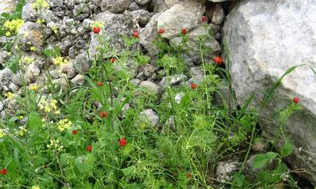 צמחים נדירים באזור הם השיכרון הזהוב הצומח על קירות החורבה הרומית וכן חבצלת קטנת-פרחים, בוצין מזרחי וציפורנית מפושקת.