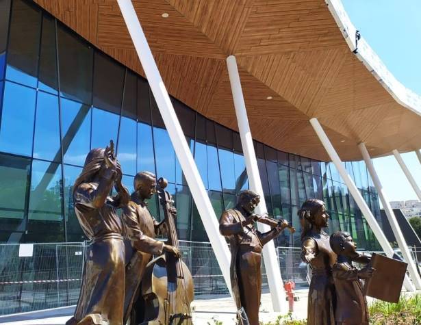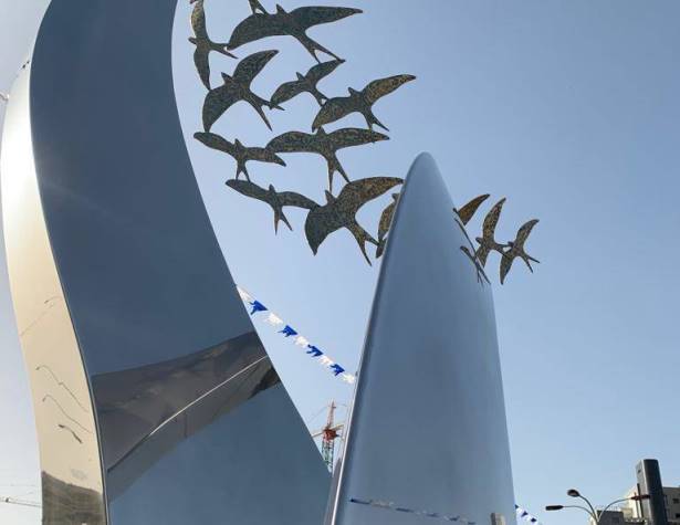 פסל של האמן לב אברמזון בשם ציפורי האביב.