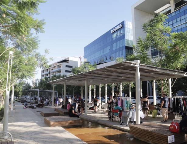 בנוסף אליו, בעיר פועלים מרכז עינב והפארק הטכנולוגי, אשר הפכו בשנים האחרונות למוקדי משיכה ארציים לחברות מובילות בישראל. אל מתחמים אלה מגיעים מדי יום עובדים ומבקרים רבים מהעיר ומחוצה לה לעבודה, בילוי מהנה וחיי לילה עשירים, שכוללים מגוון רחב של חנויות, פאבים, מסעדות ובתי קפה.