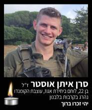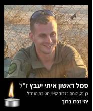 סמל ראשון איתי יעבץ ז"ל, לוחם בתכנית ארז בגדוד 932 של חטיבת הנח"ל, בן 21 בנופלו.