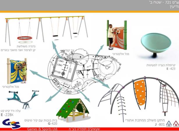 שני מתקנים משולבים האחד כולל שלוש מגלשות בגבהים שונים, סולמות טיפוס, קורי עכשיו לטיפוס ומנהרות זחילה, המתקן השני כולל מגלשה וקיר טיפוס. בנוסף באופציה זו מוצעות שתי נדנדות עלה ורד (אחת בעמידה והשנייה בישיבה) נדנדת פעוטות בדמות צב נדנדה בדמות דג מתקן להליכה בשיווי משקל ומתקן רודאו לילדים.
