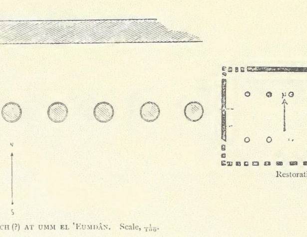 השרידים העיקריים אשר נחשפו בחפירות הארכיאולוגיות באתר אום אל-עומדאן הם של היישוב היהודי ובו סמטה מרכזית שמשני עבריה מבני מגורים ומבנה מרכזי, אשר זוהה כבית כנסת. מבנה בית הכנסת עבר מספר שינויים במהלך השנים – החל מאולם ציבורי מהתקופה ההלניסטית הקדומה (הסלווקית), דרך אולם גדול יותר אשר הוקם בתקופת החשמונאים מעל האולם הסלווקי ושימש כבית כנסת ועד בית כנסת רחב יותר אשר הוקם בימיו של הורדוס תוך הריסת בית הכנסת החשמונאי ושימוש בחלק מקירותיו. בית כנסת ההרודיאני חרב בתקופת המרד הגדול, שופץ ושימש עד חורבן היישוב היהודי, ככל הנראה בימי מרד בר-כוכבא או מעט אחריו.