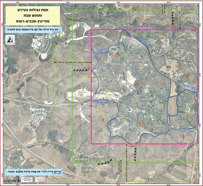 מקראה למפת גבולות העירוב ותחום שבת של מודיעין מכבים רעות