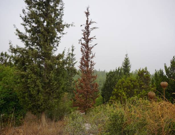 לאורך השביל תבחינו מימינכם ביער מודיעין הצבוע בצבע ירוק בוהק הכולל: עצי ברוש ועצי אורן, בחלק השמאלי של הדרך ועל הגבעות ישנם עצי שיזף רבים עם תפוחונים כתומים קטנים המסרבים להיפרד מענפיהם.