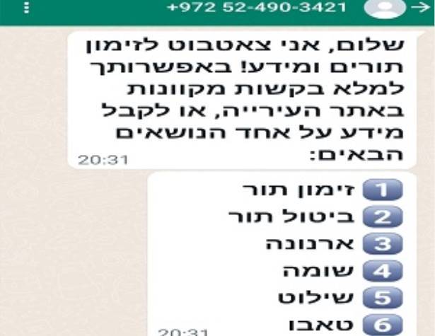 מספר הטלפון של המערכת העירונית בווטסאפ - 052-4903421. או לחצו כאן על הקישור