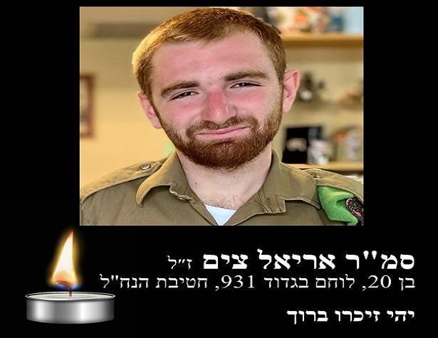 רגע לפני ערב יום הזיכרון לחללי מערכות ישראל ונפגעי פעולות האיבה, התבשרנו ביום שישי 10.5.24, על נפילתו של סמ"ר אריאל צים, לוחם בגדוד 931, חטיבת הנח"ל, שנהרג בלחימה ברצועת עזה.