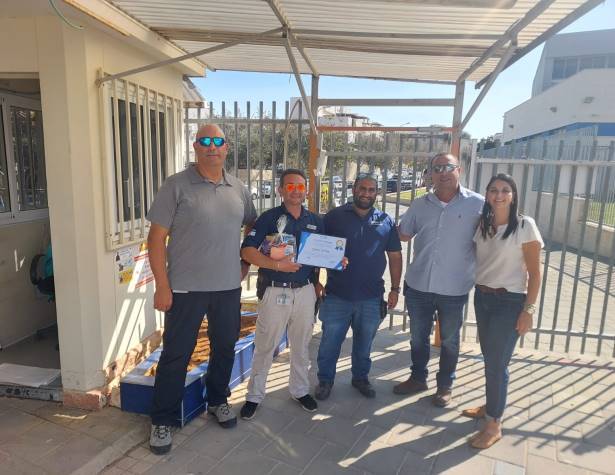 בתמונה - המאבטח אליהו ניסים, אשר מאבטח מידי יום את תלמידי וצוותי בית הספר עירוני ה' ע"ש יצחק נבון במסירות רבה, וקיבל תעודת הוקרה על הצטיינותו בחודש אוקטובר.