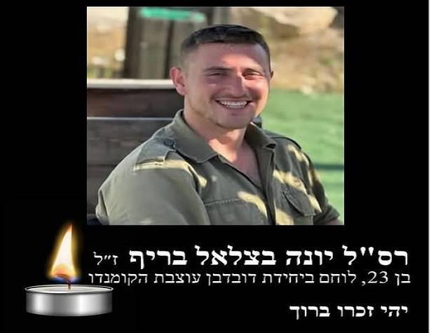 רס"ל יונה בצלאל בריף ז"ל, בן העיר שלנו, הלוחם האמיץ מיחידת דובדבן של עוצבת הקומנדו, הלך לעולמו הבוקר, 26.11.24, לאחר מאבק ממושך וכואב, מאז נפצע באורח אנוש בקרב גבורה בקיבוץ כפר עזה בשבעה באוקטובר.