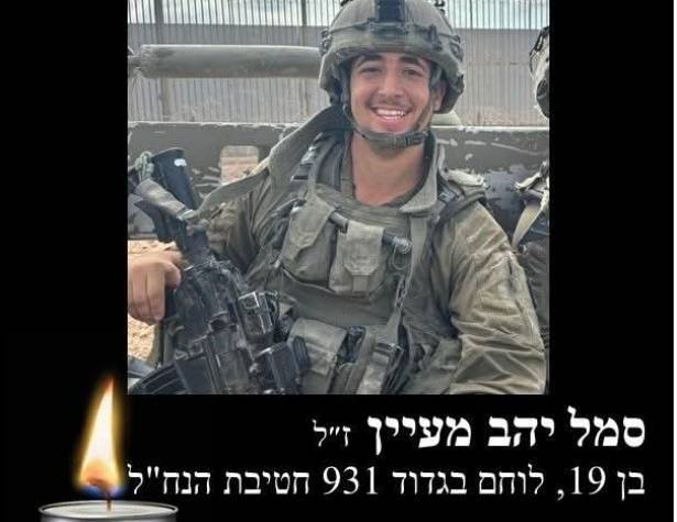 ביום שבת 11.1.25, התבשרנו על נפילתו של סמל יהב מעיין ז"ל, בן 19, שנפל בעת הגנה על המולדת, ברצועת עזה.