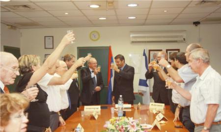 הטקס התקיים בנוכחות ראש העיר, חיים ביבס, סגניו מויש לוי, חנן ברנשטיין ומוטי גרונר, מנכ"ל העירייה, ראשי אגפים בעירייה, אחראית על קשרי החוץ בעירייה זיוה אסא, ראש העיר בניה לוקה - דראגוליוב דוידוביץ', יו"ר מועצת העיר סלובודאן גבראנוביץ', אחראית על קשרי החוץ של בניה לוקה ביליאנה יושיץ'-באייץ', יועץ רה"מ חבר סנאט ונציג הרפובליקה הסרבית - אריה ליבנה שהיה הרוח המקדמת של ברית הערים ואלכסנדר ניקוליץ', יועץ נציגות הרפובליקה הסרבית במדינת ישראל.