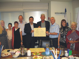 ביום שני הגיעה המשלחת בביקור בבניין העירייה שם נפגשו ראשי המשלחת עם ראש העיר חיים ביבס. בתום המפגש נערך טקס במהלכו נחתם מזכר הבנה על-ידי נציגי המרכז השלטון המקומי בישראל, ראש העיר, חיים ביבס וכמובן נציגי האיחוד האירופאי ומפתחת המודל בישראל, ד"ר אורנה מגר.