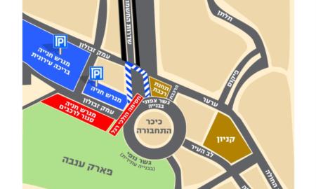 לצורך העבודות ייסגר גם החניון הצפוני של פארק ענבה הכולל 80 מקומות חנייה. שטח החניון ישמש לשטח היערכות ועבודה של הקמת הגשר. העירייה ממליצה לנוסעי הרכבת להחנות את רכביהם בחניון הבריכה העירונית הכולל 350 מקומות חנייה וחניון הזמני על שטח המכללה המונה 120 מקומות חנייה.