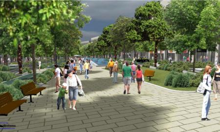 השדרה המרכזית החדשה של העיר מהווה המשך של רחוב דם המכבים, מאזור כיכר העירייה ועד לרחוב פיקוס. הקומות הראשונות של הבניינים מיועדות למסחר והן פונות אל עבר השדרה. רוחב השדרה הוא 46 מטרים בין הבניינים- רחב יותר משדרות רוטשילד בת"א. השדרה כוללת מדרכות רחבות מאוד בנות שבעה מטרים מרחב מסחרי ומדרכה להולכי רגל מכל צד, חנייה לאורך השדרה, כביש נסיעה, שדרה מרכזית בגודל 19 מטרים הכוללת גינון, שבילים, ספסלים, מזרקות, מתקני משחק וקיוסקים ושביל אופניים.