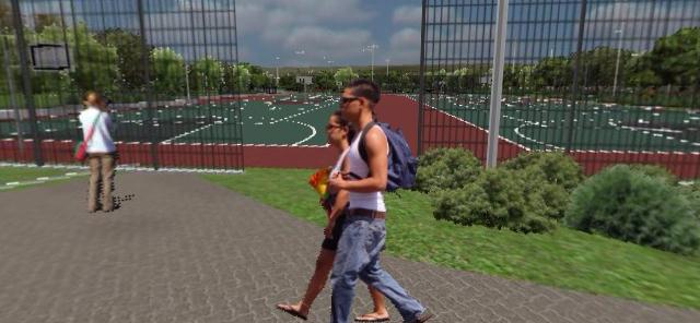 הדמיית ספורטק בנוסף, בין המגרשים יוקם "פארק סלים" אזור מיוחד שבו סלי כדורסל בגבהים שונים המאפשרים שטח אימון אטרקטיבי לכמות גדולה של משתמשים בכל הגילאים וברמות קושי משתנות.