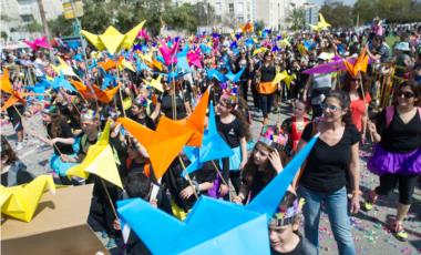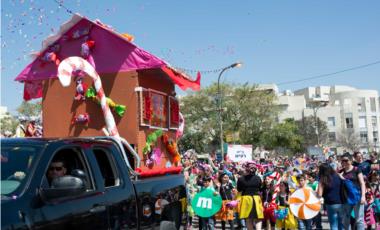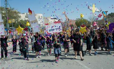 יצירותיהם של תלמידי שכבות ד' ו- ה' מכל בתי הספר בעיר שטרחו והקימו את מיצגי התהלוכה. בראש התהלוכה צעדו נבחרי העיר, חברי מועצת העיר וחברי מועצת הנוער העירונית ולאחריהם כל 26 בתי הספר היסודיים, ואיתם ילדי אקי"ם שצעדו כמו בכל שנה עם תלמידי בית הספר הדמוקרטי וילדי איל"ן, שצעדו יד ביד עם תלמידי בית הספר "מעוז המכבים", עוד צעדו ילדי החוגים העירוניים, קבוצות האקרובאטיקה, מחול וג'אז, תנועות הנוער והנהגת ההורים המוסדית, מייצגים פורימיים ענקיים, מופעי זיקוקים מרשים. במקביל לתהלוכה נהנו אלפי המשתתפים ממתחם פעילויות שהיה פתוח וחינם לקהל הרחב שכלל בין השאר, מתנפחים, ועוד. האירוע נוסף שיהיה, לצד התהלוכה, הוא המופע של מימי ויויו שריתק אליו את אלפי הקטנטנים שהיו באירוע הצבעוני של השנה.