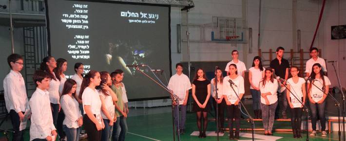 טקס יום הזיכרון לזכר יצחק רבין צילום: גידי אבינעריבני הנוער למדו על האווירה הציבורית ברחוב ועל האלימות המילולית והפיזית שהובילה למעשה הרצח של רבין ובהתאם הכינו טקס שעסק בזיכרון רבין האיש, החייל והמדינאי אך גם עסק באווירה הקשה באותם ימים ועל החשבון הנפש הציבורי, שיש לקיים בחברה הישראלית, כאשר בסופה קראו בני הנוער מהבמה אל חבריהם ביציע, העתיד של המדינה, למנוע את המשך האלימות לקחת את האחריות על השיח הציבורי ולהפוך אותו לחיובי.