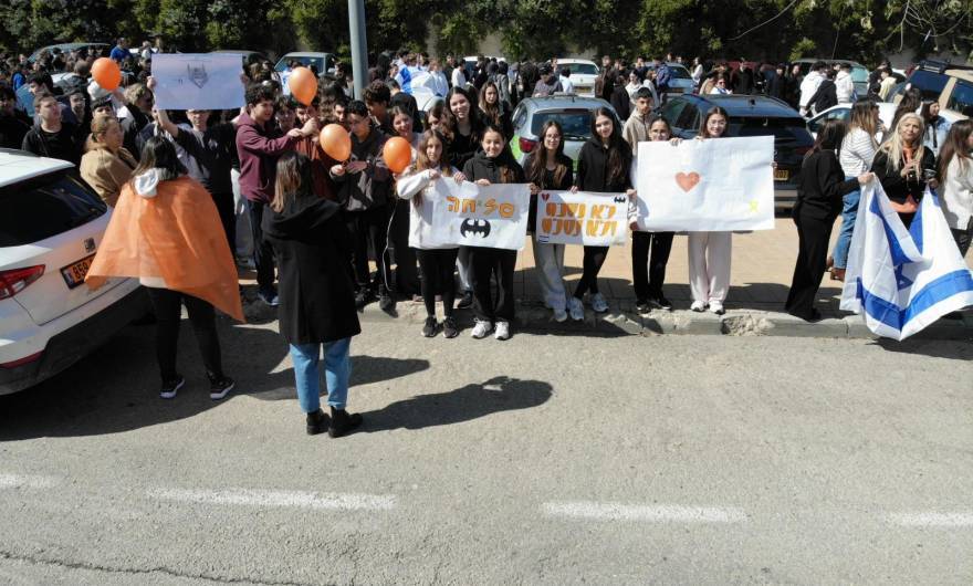 המשתתפים נשאו דגלי ישראל ובלונים כתומים, כסמל לתקווה ולכבוד אחרון לשירי, אריאל וכפיר ביבס ז"ל, שהובאו למנוחת עולמים ביישוב צוחר שבחבל אשכול.