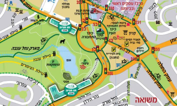 כידוע, באזור מרכז העיר ופארק ענבה הקימה העירייה שלושה חניונים הפתוחים לתושבי העיר ללא תשלום: חניון הכניסה הצפונית לפארק ענבה (חניון קפית) המונה כ-100 מקומות חנייה, חניון עמק זבולון (מול חניון צפון פארק ענבה) המונה 120 מקומות חניה וחניון הכניסה הדרומית לפארק ענבה המונה כ-250 מקומות חניה.