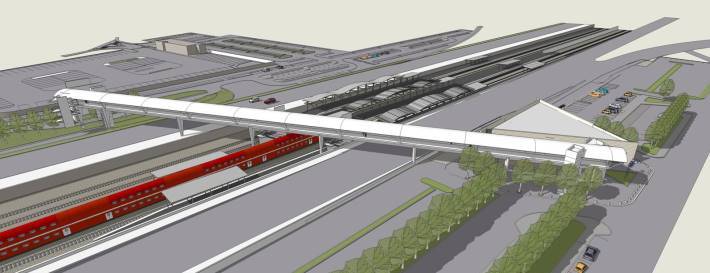 בתחילת חודש דצמבר יחלו עבודות לבניית גשר להולכי רגל המחבר בין מרכז עינב לתחנת הרכבת פאתי מודיעין. העבודות יבוצעו על ידי רכבת ישראל והן ישמשו גם את נוסעי הרכבת לכיוון ירושלים ומירושלים למודיעין מכבים רעות. העבודות על קווים אלו צפויות להסתיים ברבעון האחרון של שנת 2019.