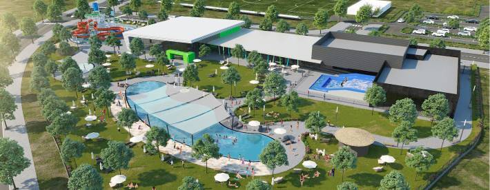 גולת הכותרת של הפארק יהיה מתחם אטרקציות מים שמיועד לילדים ולנוער ויכיל מגלשות מים ומתקנים נוספים. העבודות להקמת הפארק צפויות להסתיים בעוד כשנתיים.