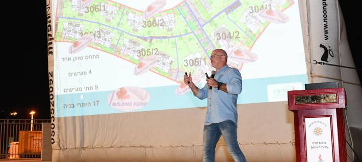 צחי כץ, מהנדס העיר. צילום: חורחה נובימינסקיאת החלק המרכזי של הכנס הוביל מהנדס העיר, צחי כץ, אשר הציג לנוכחים את תהליך שעוברת השכונה העתידית, מגבעת טרשים לשכונה ובה אלפי יחידות דיור. כץ הסביר את תהליך כתיבת תכנית התב"ע (תכנון בניין עיר) לשכונה לצד עבודה משותפת מול היזמים כאשר הדבר כולל ביצוע כל הליכי הרישוי והתכנון של השכונה והענקת היתרים ליזמים שכבר השיגו את האישורים הנדרשים, זאת במקביל לעבודות בשטח בהובלת החברה הכלכלית של העיר הכוללות פריצת דרכים והנחת תשתיות של חשמל, ביוב ומים לקראת הקמת הבניינים.