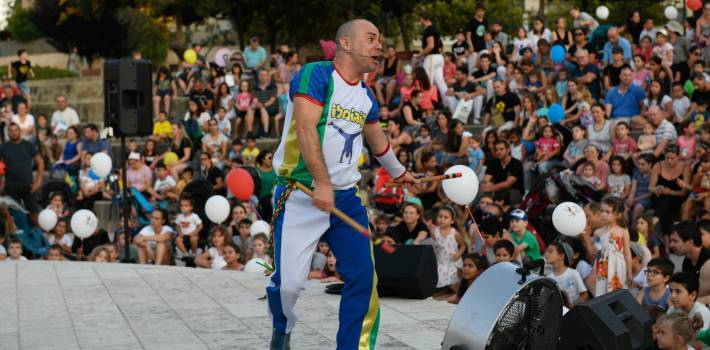 במקביל, על הבמה המרכזית עלו בזה אחר זה מפעילי ומשתתפי החוגים למופעי ראווה מרשימים בתחום המחול, התעמלות אומנותית, אומנויות לחימה שסיפקו טעימה קטנה ממה שמחכה לילדים בחוגים. לסיום עלה על הבמה המרכזית גם כוכב הילדים "קוגומלו" למופע סוחף וקצבי.