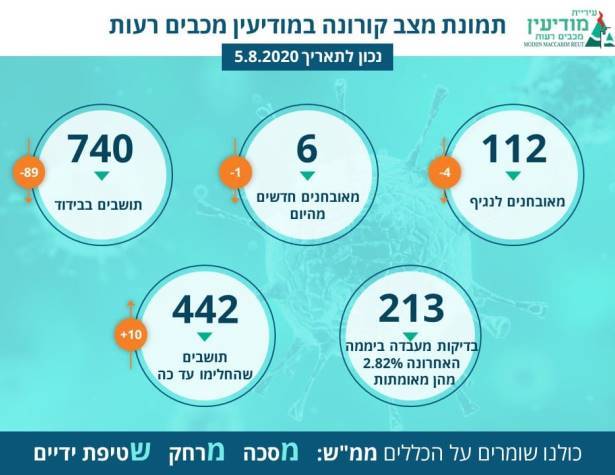 על פי המידע ממשרד הבריאות, התווספו היום שישה תושבים, שנמצאו חיוביים לנגיף. במקביל, הוסרו מהרשימה תושבים, שנדבקו ואושרו ע"י על ידי קופות החולים כתושבים שהחלימו וכן, כאלו שאינם גרים בעיר. לכן נכון להיום, יש 112 תושבים המאובחנים כחיוביים לנגיף.