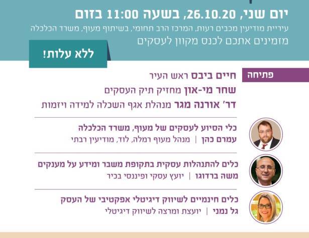 הכנס מתקיים בשיתוף עם "מעוף" שמזמינים את העסקים המקומיים בעיר לכנס מקוון, שיתקיים ביום שני , 26.10.20, בשעה 11:00.