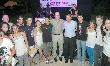השר יעלון וראש העיר עם השחיינים המצטייניםשחייני פארק המים רעות: