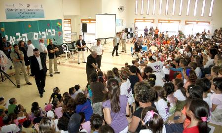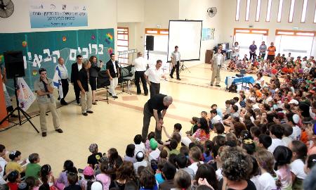 לאחר סיום המפגש בכיתה ג' פנו ראש הממשלה, ראש העיר ושר החינוך להיפגש עם ייתר תלמידי בית הספר שקיבלו את הפמליה בשיר "יחד" של להקת חלב ודבש.