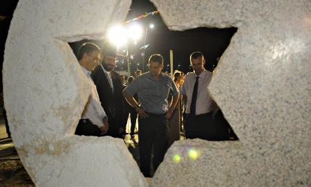 בהסרת הלוט מעל האנדרטה המרשימה התכבדו בתו של בגין ונכדתה. על האנדרטה חקוק המשפט שכתב מנחם בגין - "עלינו ללמוד ממצדה איך לא להגיע אליך וממודיעין איך לעשות אותה".
