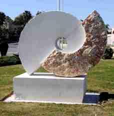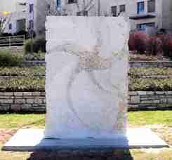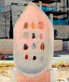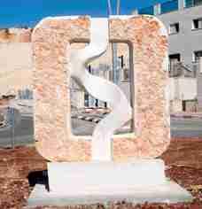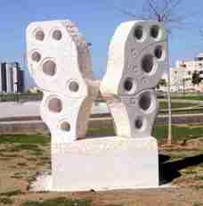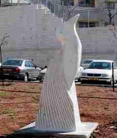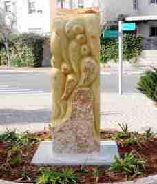 שכונת הפרחים. רח' צאלון, ליד הכניסה לחניית היכל הספורט. פסל של אביבה ברגר.