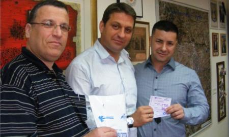 ראש העיר, חיים ביבס, פתח את מבצע ההתרמה בעיר ונתן את התרומה הראשונה ליו"ר סניף אקים מודיעין מכבים רעות, שחר מי-און, וחבר ההנהלה דדי ארנסט.