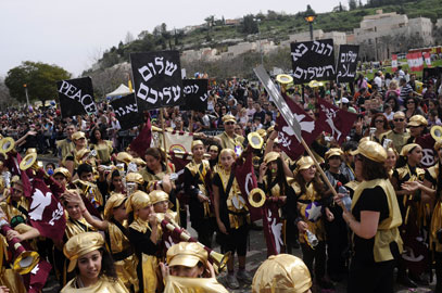 אלפים מתושבי מודיעין מכבים רעות הגיעו ביום שישי לחגוג בתהלוכת העדלאידע המוסיקלית שהתקיימה בהפרש של שבוע מחג הפורים בשל מזג האוויר.