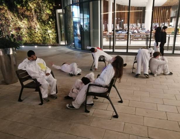 טבילת אש ראשונה לאחר ההכשרה נערכה בשבוע האחרון, כשיצאו למרחב הציבורי בסביבת מרכז העיר, ואלתרו קטעי "נונסנס" עם העוברים ושבים ברחובות ואף שימחו את דיירי הדיור המוגן "עזריאלי פאלאס" ששיתפו פעולה ונהנו מאוד.