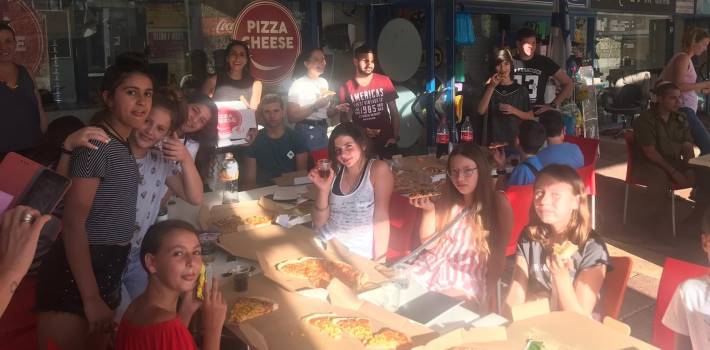 אירוח ילדי הדרום. צילום באדיבות עמותת חממהבין לבין נהנו הילדים מארוחות וכיבוד שקיבלו מארומה, מרולדין, ממכביס, מהמטבחון של סימה, פלאפל עופר ופיצה ציז, שהרעיפו ממטעמיהם לילדי הדרום שסיימו את הביקור בעיר במסיבה מרגשת שלהם ושל מארחיהם.