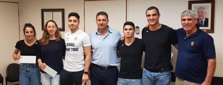 חמישה ספורטאים מצטיינים מהעיר זומנו לחדר הישיבות בעירייה וקיבלו מידי ראש העיר, חיים ביבס מלגות בסך כולל של עשרת אלפים שקלים כאות הערכה על הישגיהם בענפי הספורט השונים.