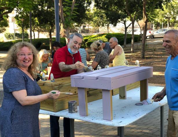 מכניסים עץ צבע וטבע למרחב של מפג"ש - המחלקה לאזרחים ותיקים באגף קהילה בעירייה, החלה לאחרונה במיזם משותף עם המשרד להגנת הסביבה, שכולו עשייה משותפת בתחום הנגרות להקמת הגינה של המתחם.