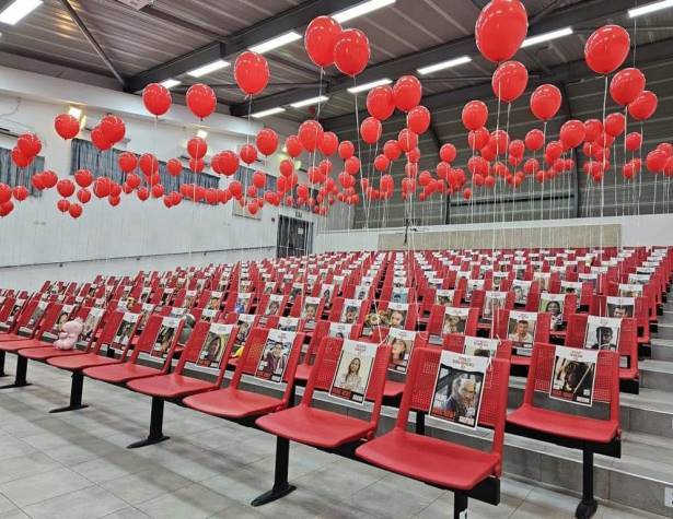 באודיטוריום בית הספר, נקשרו לכיסאות בלונים אדומים המסמלים את המאבק להחזרתם, והונחה על כל כיסא תמונה עם שם החטוף, ובובה שנתרמה על ידי קהילת בית הספר. מיצג מטלטל שיישאר בימים הקרובים ובעקבותיו, מנהלים מחנכי הכיתות שיח עם התלמידים, וכתיבת מכתבי עידוד ותמיכה למשפחות החטופים.