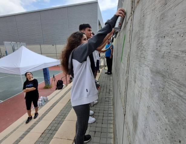 177 תלמידי השכבה אחזו בהרבה בקבוקי ספריי צבע וחולצות שאפשר ללכלך ויחד ריססו וציירו על הקיר את המסר האופטימי שמקבל משמעות יותר מתמיד בצל המלחמה – "גם זה יעבור", באהבה ממחזור ו' של בית הספר.