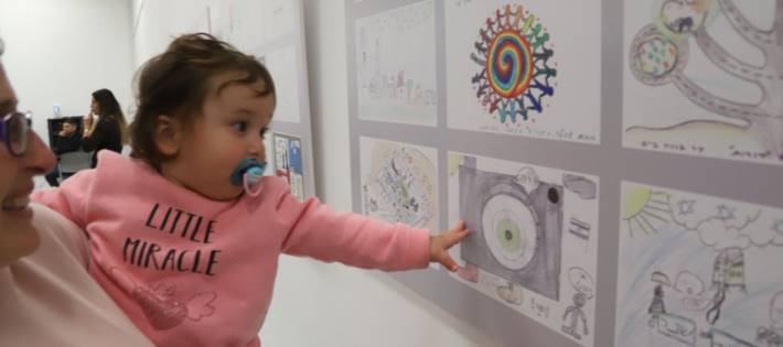 התערוכה ''המדינה ואני בעוד 70 שנה''. צילום: פז ברפתיחת התערוכה התקיימה במעמד ראש העיר, חיים ביבס שבירך על היוזמה הייחודית, סגני ראש העיר מויש לוי ושלמה פסי, חבר המועצה שמעון גואטה, צוותי מנהל החינוך, מנהלי בתי ספר, נציגי רשת הספריות וכמובן התלמידים הנרגשים ובני משפחותיהם.