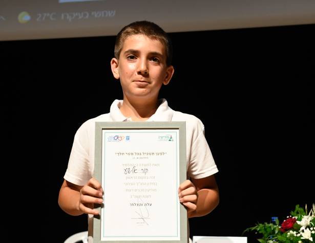 במקום הראשון זכה התלמיד אלישע קור, מביה"ס הממ"ד נתיב זבולון, במקום השני, דניאל מרסיאנו מביה"ס הממלכתי יח"ד, במקום השלישי תמר רוטשטיין מביה"ס הממ"ד דרכי יהודה ובמקום הרביעי, אייל פריימוביץ מביה"ס הממ"ד אבני החושן.