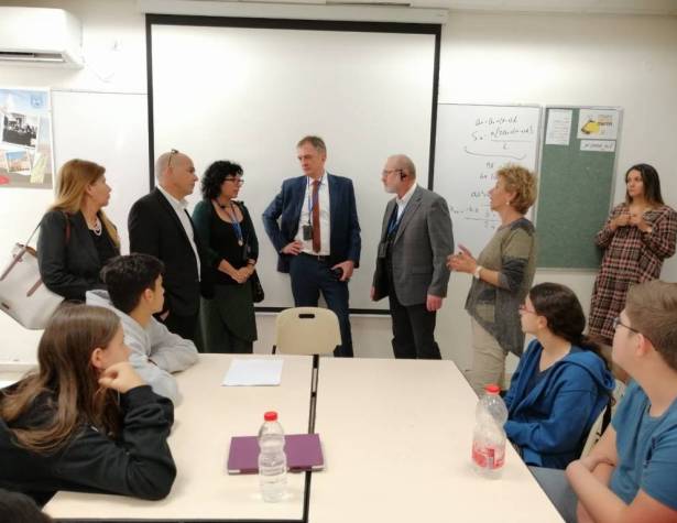 תחילה הגיעו חברי המשלחת לבית ספר עירוני ה' ע"ש יצחק נבון. בבית ספר זה, אירחה המנהלת ליאת אפלבוים, בחדר האודיטוריום ובמרחב הלמידה הנבנה בימים אלו, במסגרת תכנית M21 ללמידה מתקדמת וחווייתית ממנו התרשמו מאוד חברי המשלחת.