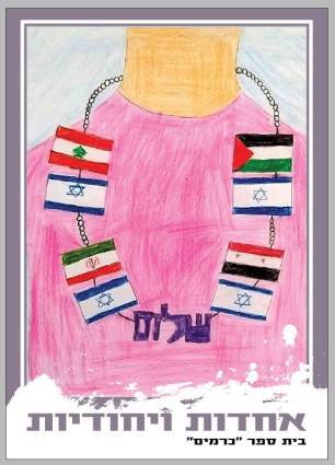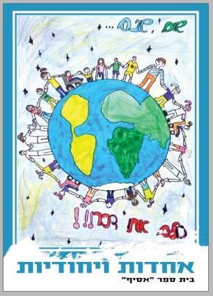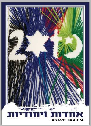 ריבוי דמויות הנמצאות סביב מעגל כביטוי למגוון הרחב הקיים בתרבות היהודית-ישראלית. שימוש בצבעוניות במילים שלום, שווים/שונים להבעת השונות והצבע האחיד במילה אחדות כייצוג לאחדות. הידיים שלוחצות זו את זו מסמלות אחדות שחובקת את העולם. המילה שלום בשתי שפות רשמיות של ישראל, מסמלות את השאיפה שלנו שביחד עם האחדות והייחודיות יבוא גם "שלום על ישראל". המגן דוד מייצג את המכנה המשותף הרחב שיש לכולנו בארץ ובעולם-היהדות והקשר למדינה